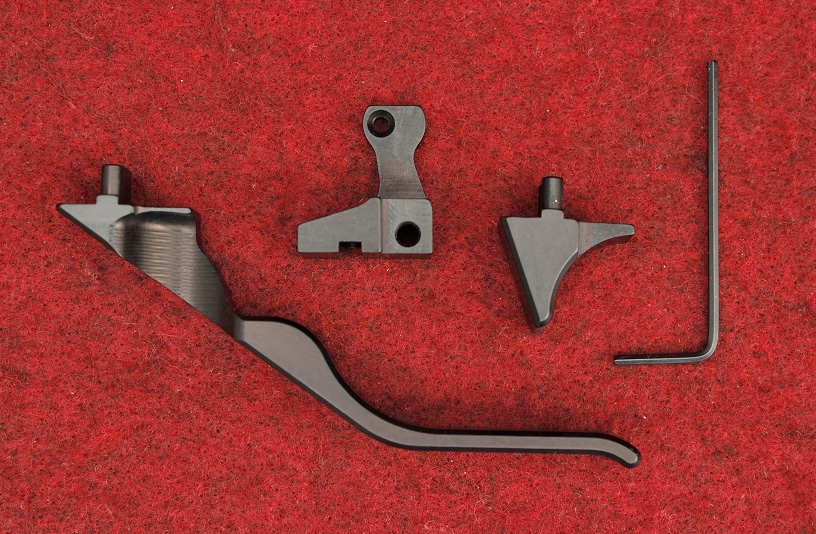 Upgrade to the KIDD Interchangeable Magazine Release System for the 10/22® geometry trigger. This three piece set includes the magazine release, the speed/long lever, and the extended/medium lever. This replacement for the standard factory magazine release allows you to go quickly from the extended release lever to the long and sleek speed lever with just a turn of a set screw. Allowing a shooter to easily adapt the rifle from varmint hunting to competitive shooting without taking it apart.